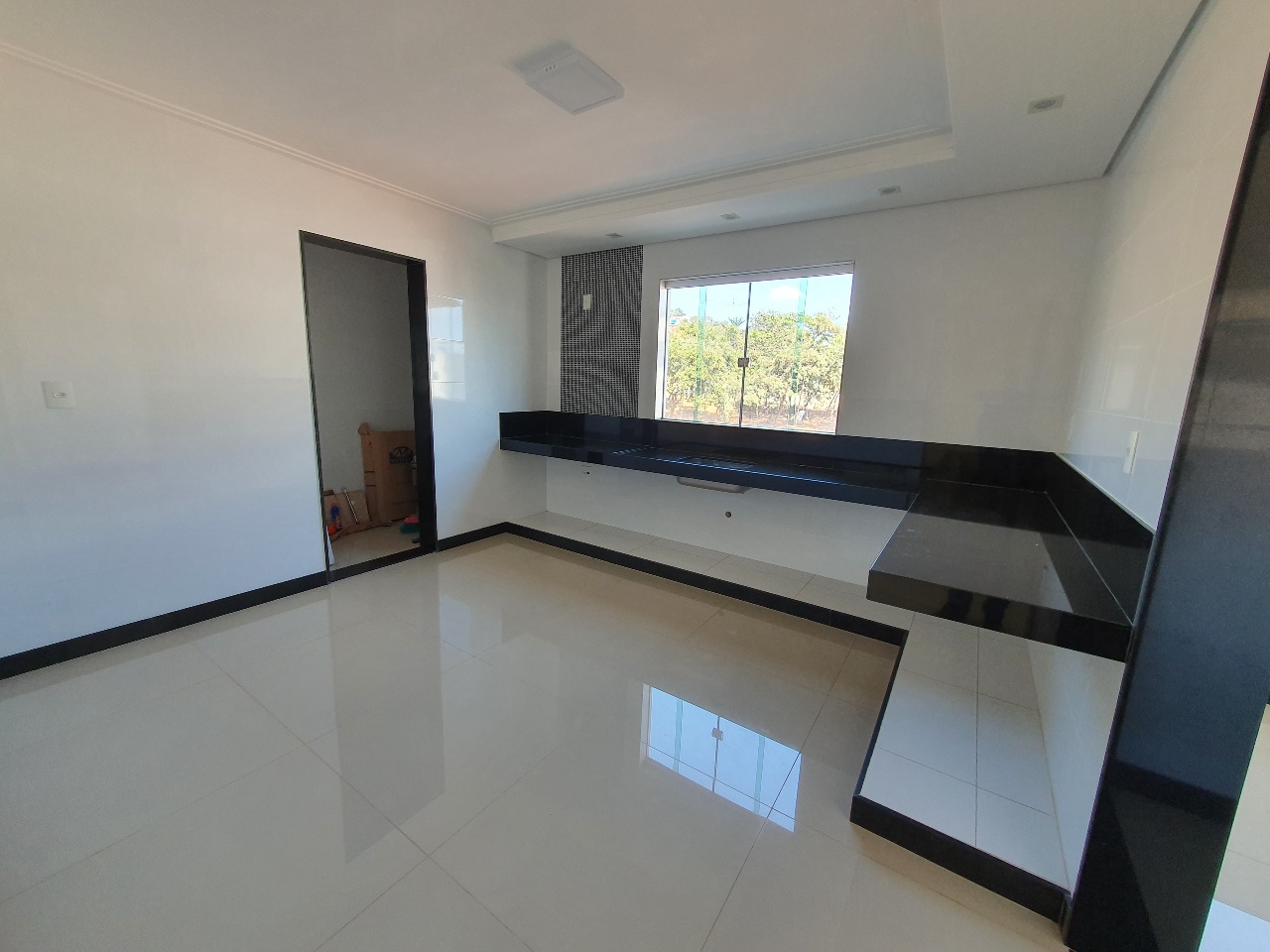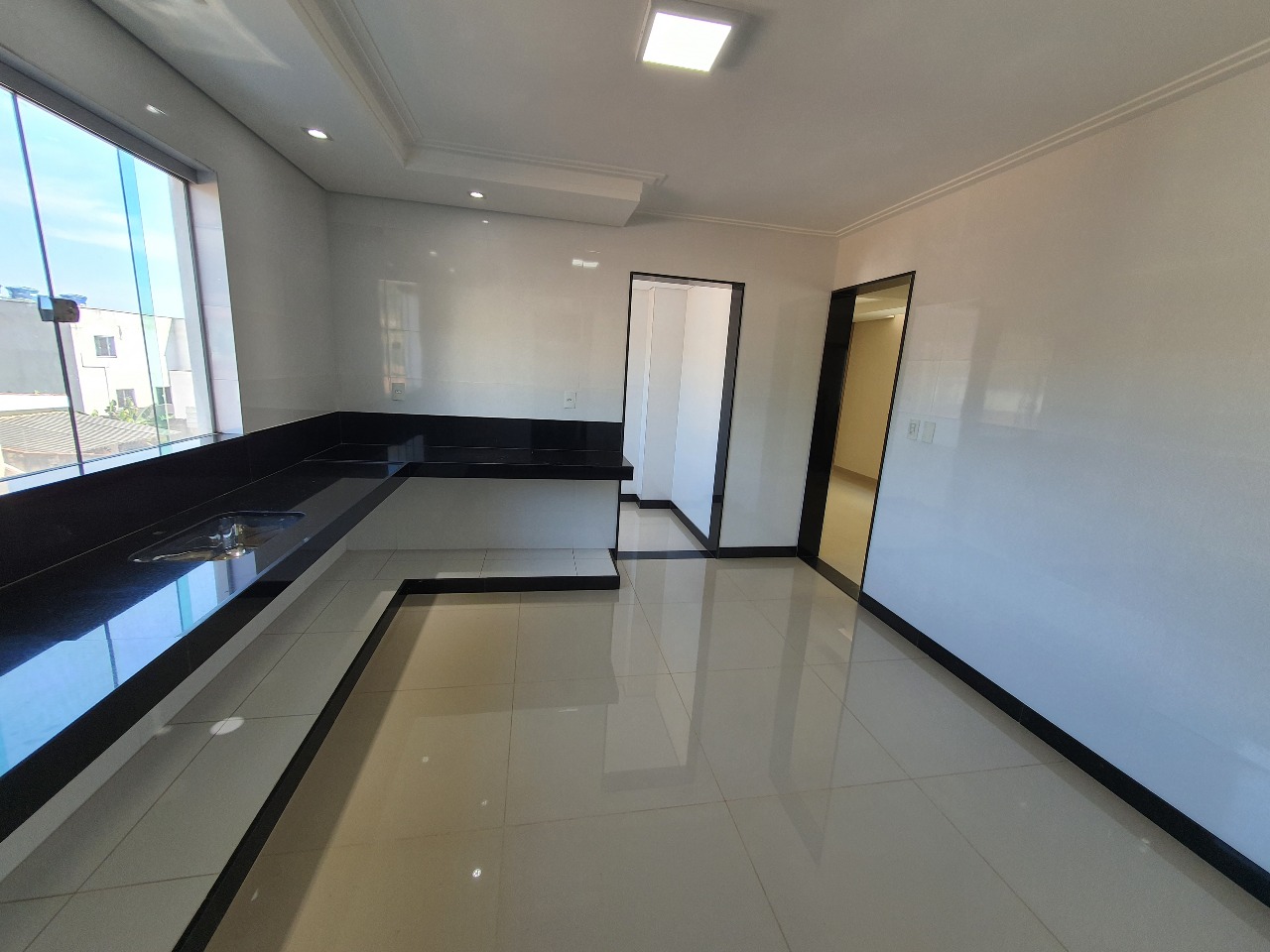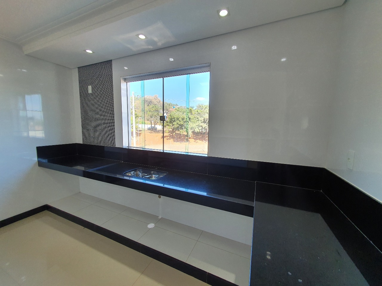 Piso porcelanato, bancadas em granito, iluminação led.