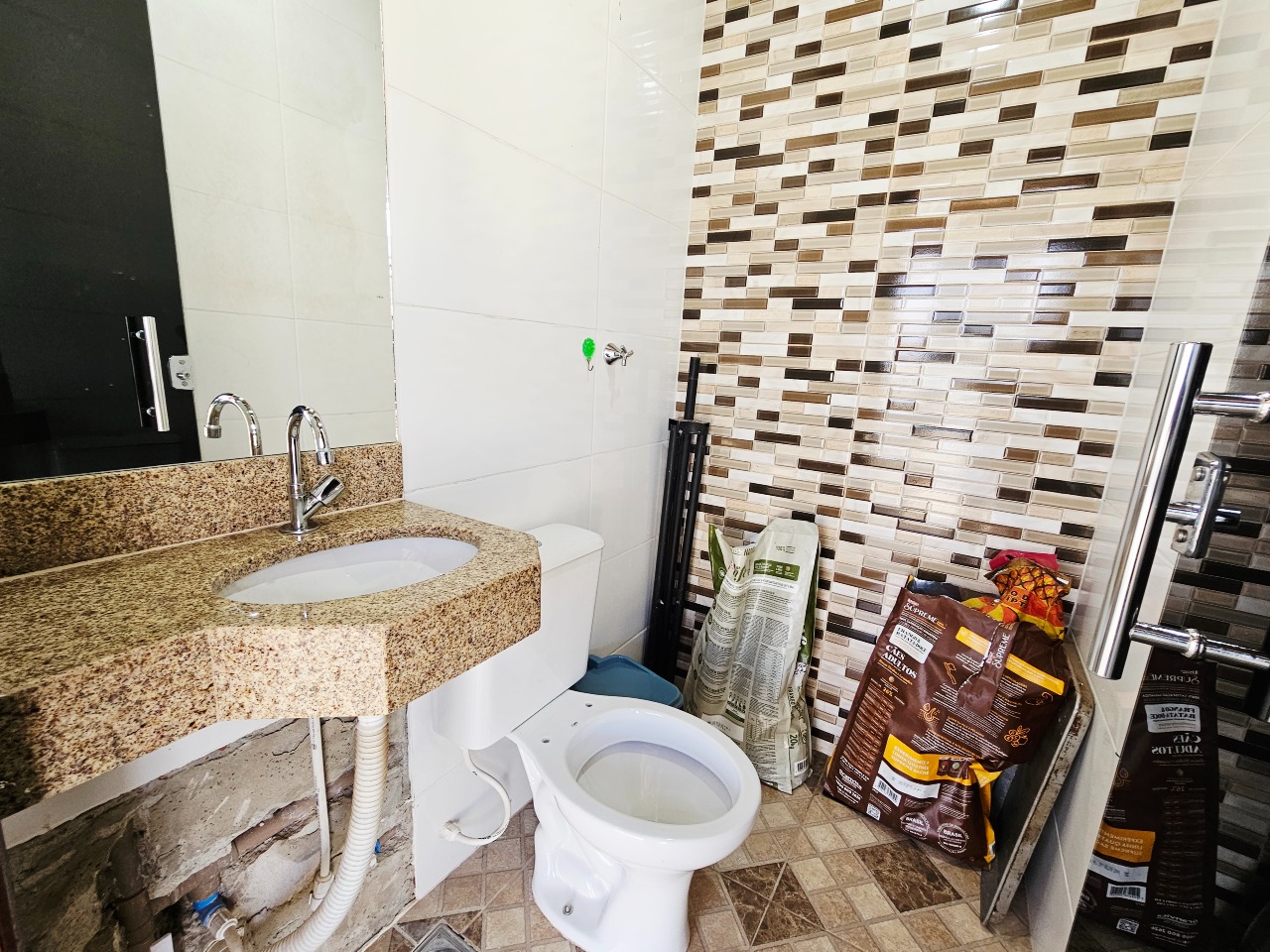 1º pavimento: sala ampla, 3 quartos, sendo 1 suíte, banheiro social e cozinha.