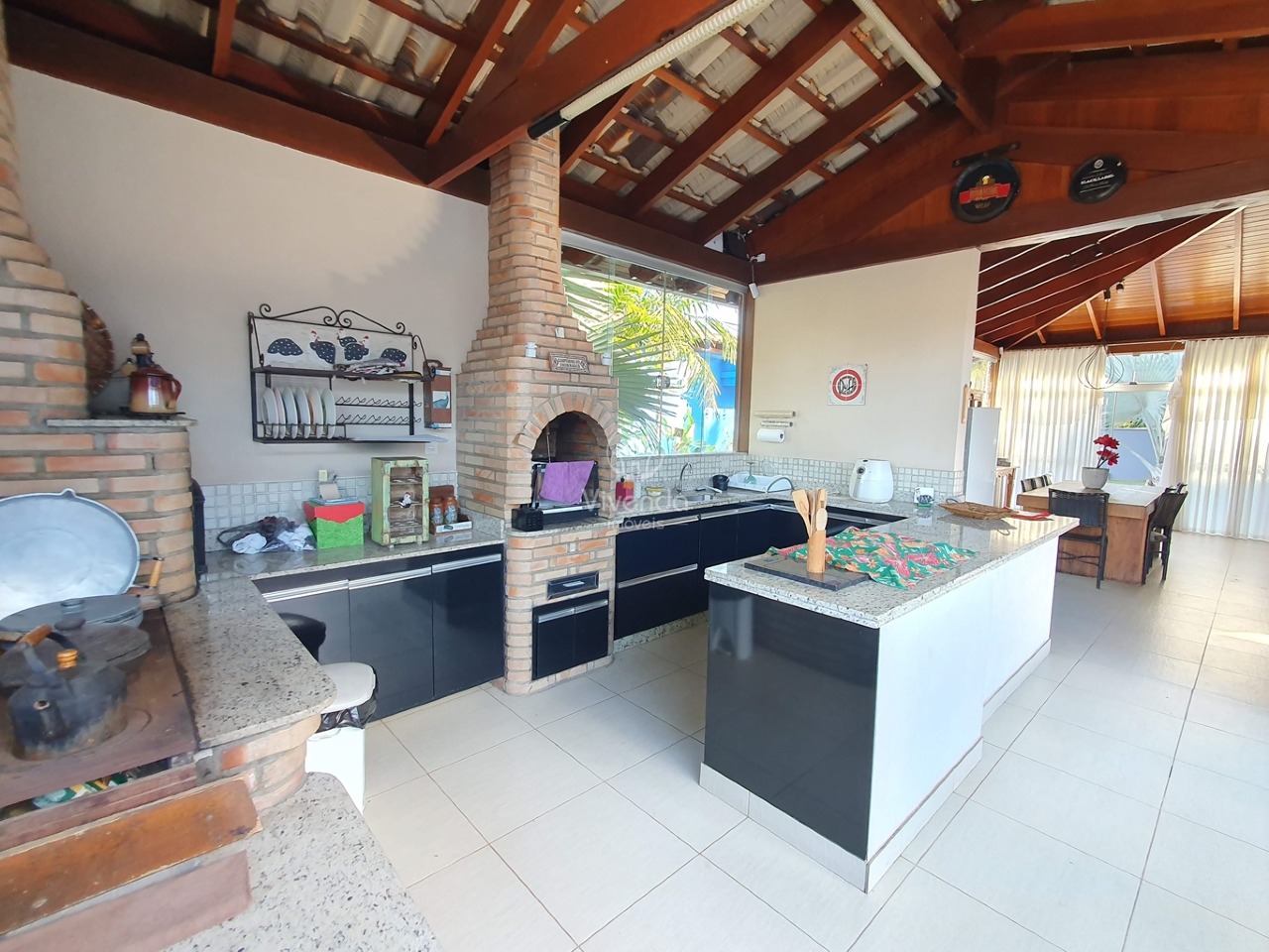 POSSUI 2 QUARTOS, SENDO UMA SUÍTE, LAVABO, SALA AMPLA PARA DOIS AMBIENTES INTEGRADA COM A COZINHA CONTENDO CHURRASQUEIRA E FOGÃO A LENHA.