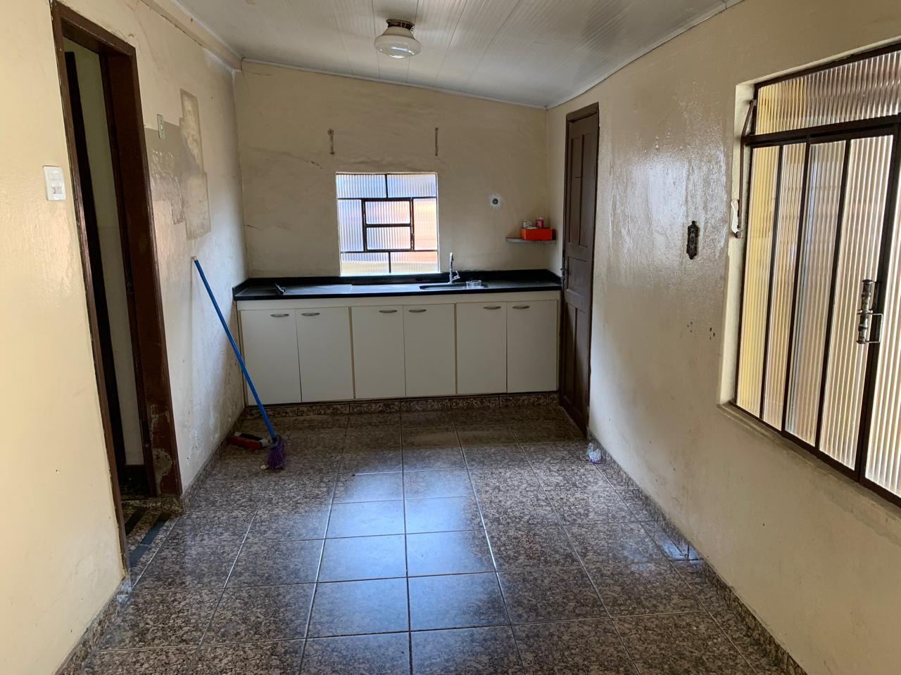 Casa com 2 quartos, sala de televisão, sala de jantar, banheiro social, cozinha com armário, lavanderia, área externa, varanda e 1 vaga de garagem.