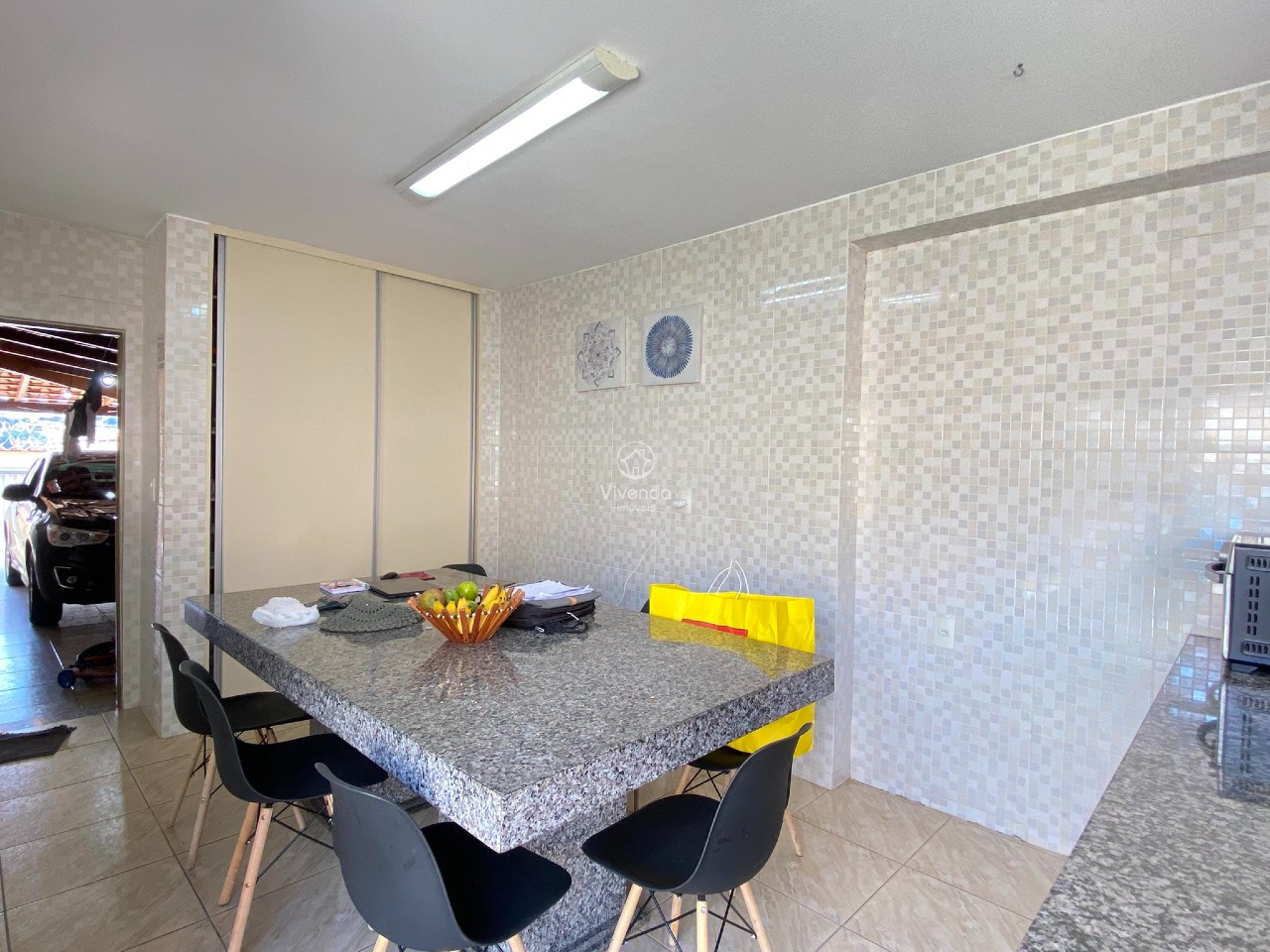 3 quartos, sendo 1 suíte com closet | Sala ampla para 2 ambientes | Copa | Cozinha | Banheiro social | Escritório | Área gourmet com churrasqueira e banheiro | Área de serviço | Quintal.