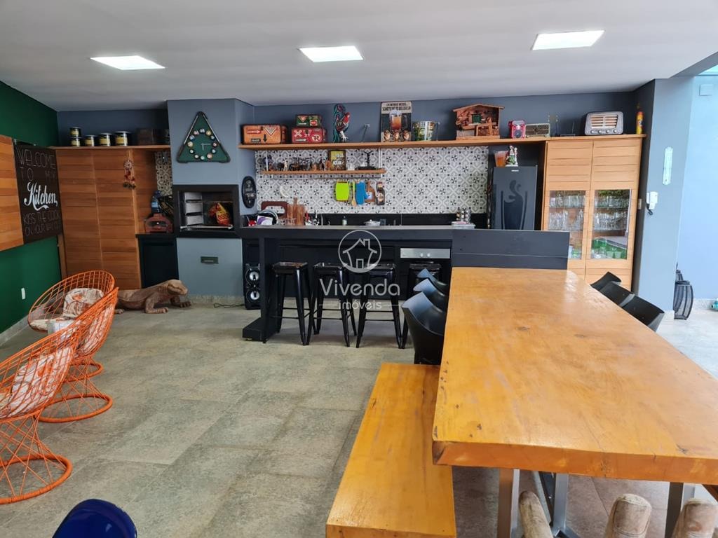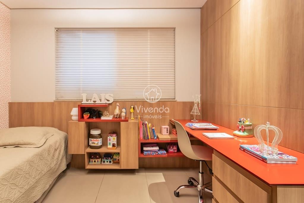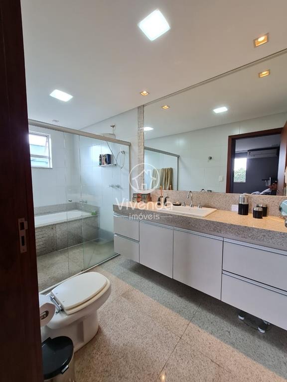 3 quartos, sendo uma suíte com armários e banheira, 2 salas, escritório com banheiro, banheiro social, cozinha, área gourmet, área de serviço e 2 vagas de garagem