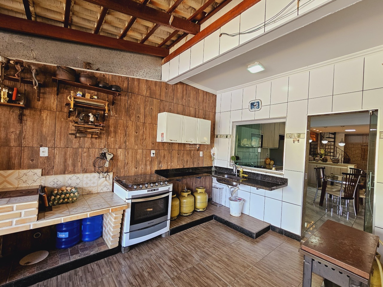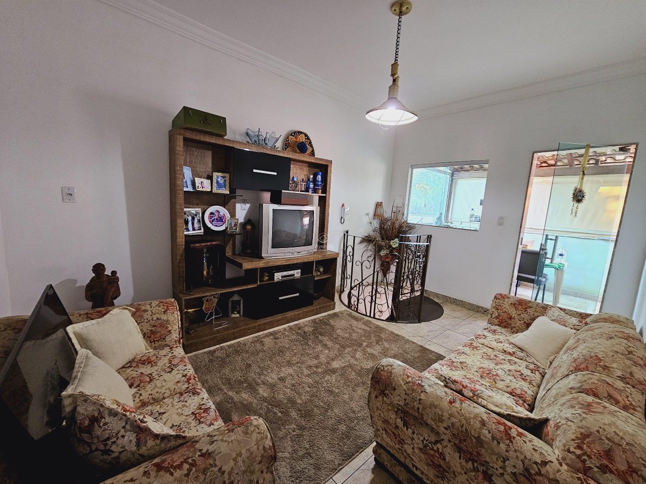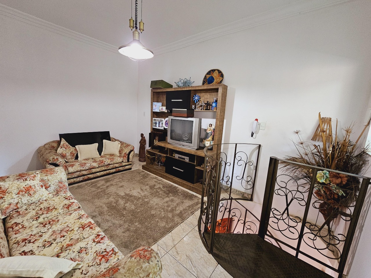 1° pavimento: sala de estar, sala de TV conjugada com cozinha, 3 quartos (sendo 1 suíte), banheiro social e área de serviço e 4 vagas de garagem cobertas.