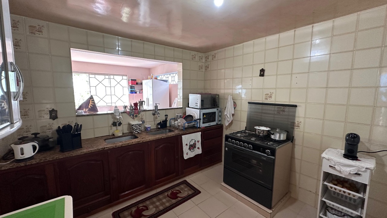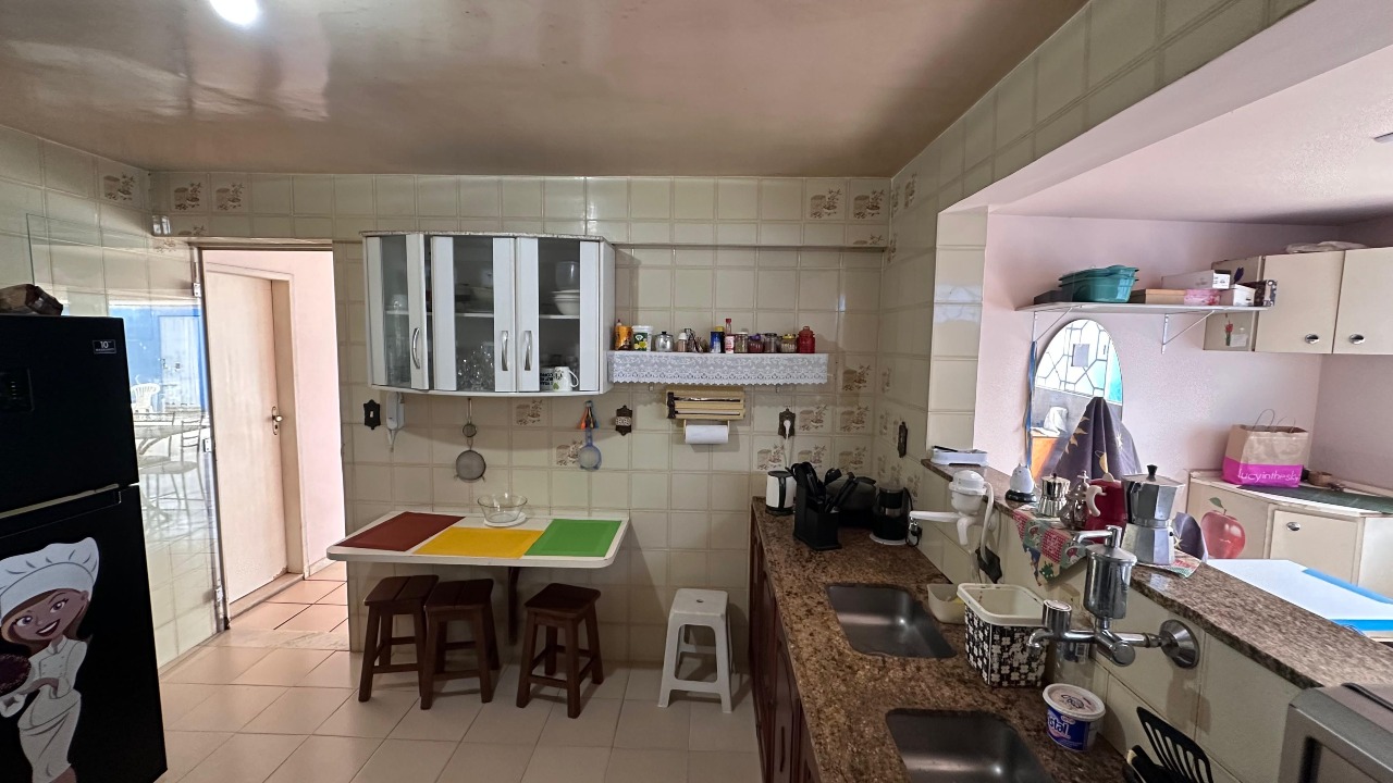 1º pavimento: cozinha com ármarios, a área de serviço é espaçosa e funcional, com espaço para festas.