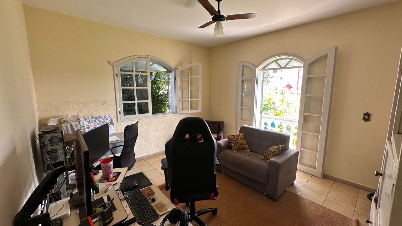2º pavimento: 3 quartos, sendo 1 suíte, sala e banheiro social.